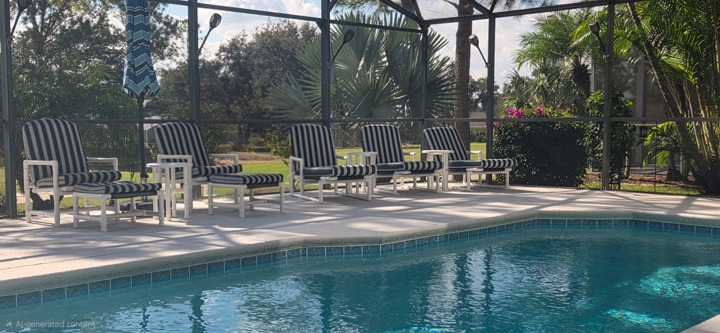 The villa is beautifully decorated to give it such a homely feel, and it is so well equipped to ensure a comfortable stay. The pool deck area is also spacious and well equipped to enjoy the Florida sunshine and the views of the 17th tee.